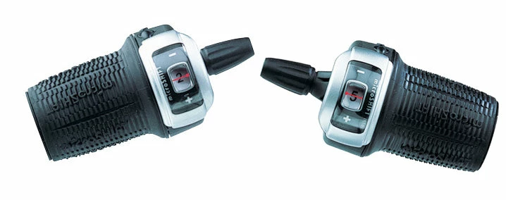 MicroShift, supplying Shimano compatible parts since 1999. These Twist or Grip style shifters come as a set to suit a 3 x 9-speed recreational MTB style bikes and are commonly found on kids bikes. The Left-Hand shifter is a friction model.