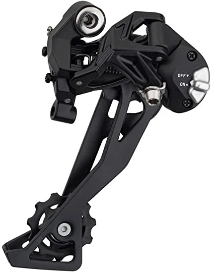 MicroShift, supplying Shimano compatible parts since 1999. This rear derailleur is constructed from mostly alloy parts and has a Clutch system, to stop chain noises while riding on rough terrain. The Clutch can also be switched off, to get a smoother shift. It also helps when the wheel needs to be removed. This model is made to suit Shimano SLX equipped bikes.