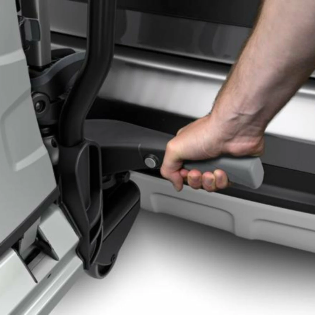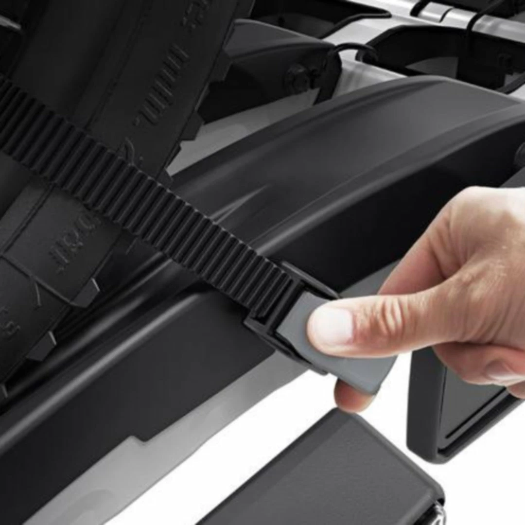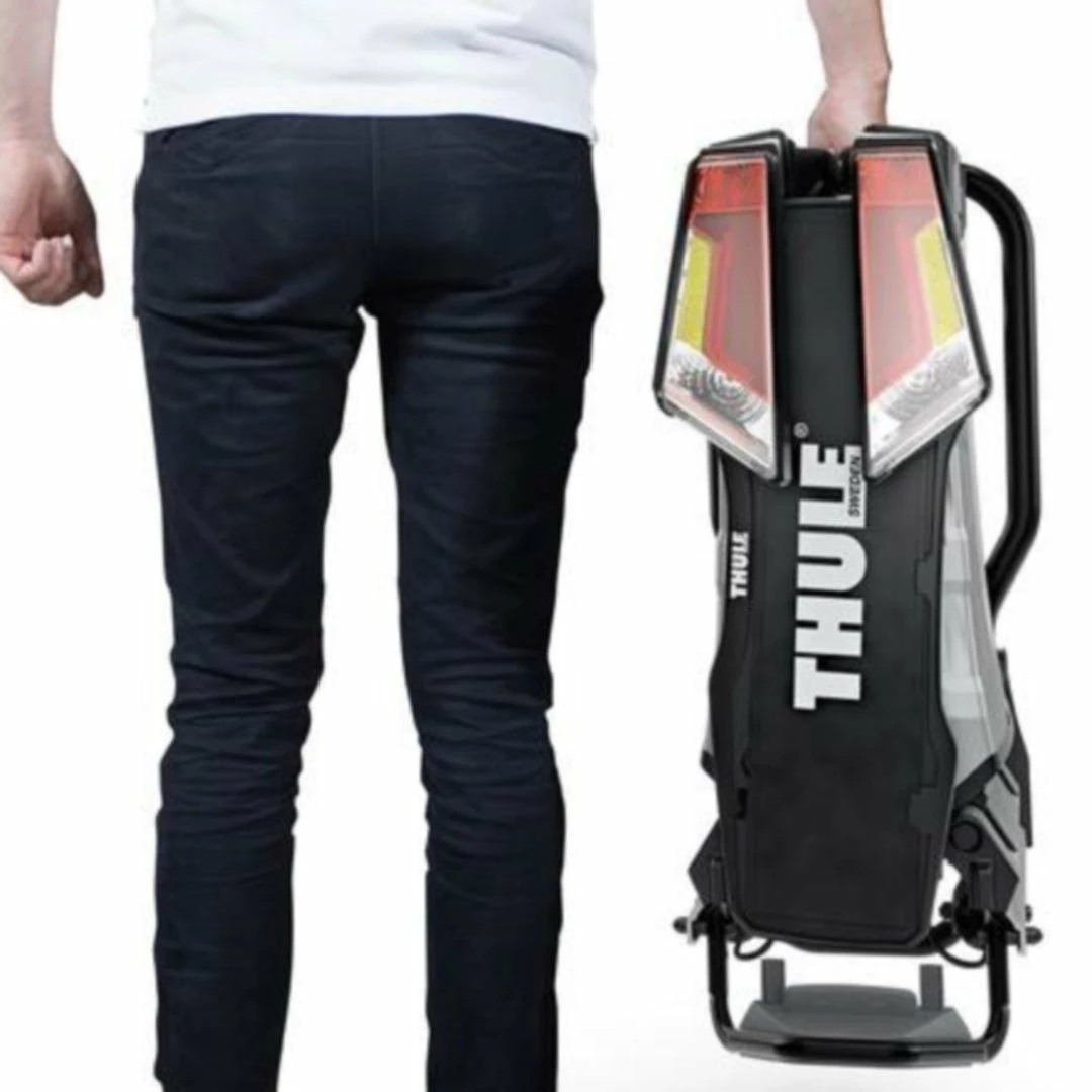 The fully foldable, compact, and easy-to-use towbar-mounted bike rack with a high load capacity enabling transport of e-bikes and heavy mountain bikes. Detachable bike arms with lockable Thule AcuTight torque limiter knobs ‘click’ when optimal torque is reached. The large distance between wheel holders enables transport of sturdy bikes with large wheel bases. Adjustable pump buckles with extra-long wheel straps for easy fastening of wheels (up to 4.7″) for transport of fat bikes. Easy trunk access even with bikes mounted, thanks to smart foot pedal tilt. Wide tilt angle allows opening of even very large rear doors, even with bikes mounted. Easy mounting and adjustment of the bike rack before closing the tightening handle, thanks to the towbar coupling’s initial stability. Ergonomic transport of the bike rack thanks to the integrated carrying handles. Lock your bikes to the bike rack and your bike rack to the towbar (locks included). Fits 50mm ISO compliant towballs only.