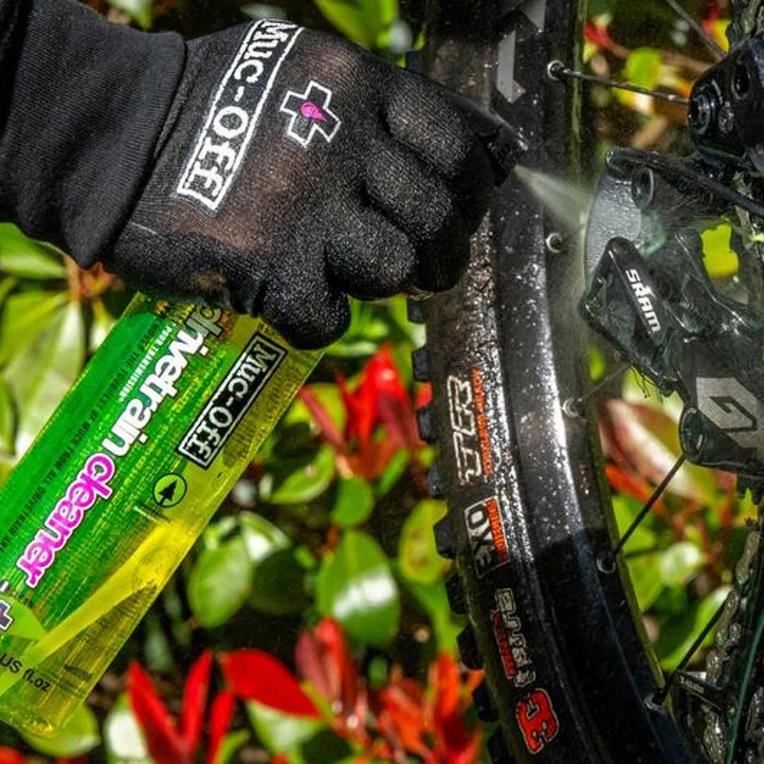 Clean your entire drivetrain in seconds with Muc-Off’s fast and effective biodegradable formula. A complete drivetrain cleaning solution, either pour into a chain cleaning device or spray directly onto your chain rings, rear cassettes and derailleurs to clean your entire drivetrain within seconds. It’s also fully biodegradable and safe for metal, plastic, rubber and seals. To use, simply shake bottle vigorously, spray all over the drivetrain, leave for up to 1 minute and agitate with a brush if required. After agitation thoroughly rinse off with water making sure all of the formula has been removed. Consider applying Bike Protect to disperse moisture before applying a chain lube. Try using with the Muc-Off X-3 Dirty Chain Machine to provide the deepest clean on even the dirtiest chains.